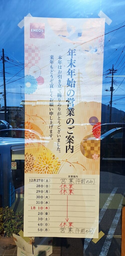 お知らせ 営業日年末年始 年末年始 営業日ご案内 お知らせ 2025.12.27 本年も皆様に大変お世話になりました。年末年始、体調など崩されませんようご自愛ください。年始は2026年1月5日から営業いたします。来年も変わらぬご愛顧の程、よろしくお願いいたします。
